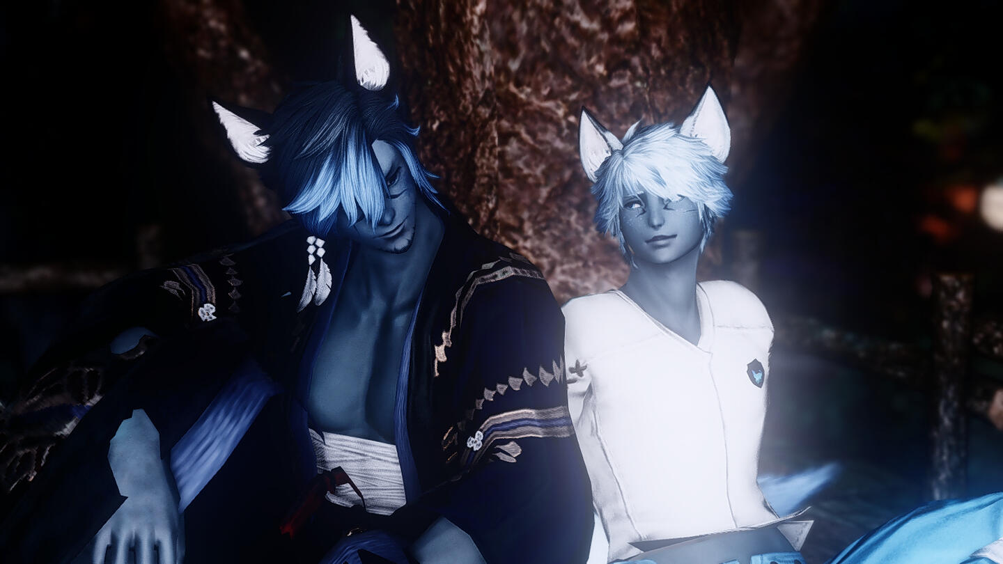 At some point, the young kitsune was quite literally a detached and wandering spirit. However, ultimately through the prayer beads crafted by him passed to Tetsuro, thus touched by Ninka'ir, Kenta found himself drawn to the young miqo'te. With that, Kenta's spirit attached to Ninka'ir safely, having felt a mutual comfort and compassion for the other. They've shared fights together whilst Kenta wanted to do what he can to be heard and to aid his friend against malevolence spirits. Once Kenta's vessel was restored, the two had a 'second meeting' properly as two wholes of themselves and became even closer. Kenta considered Ninka'ir like a second elder brother.